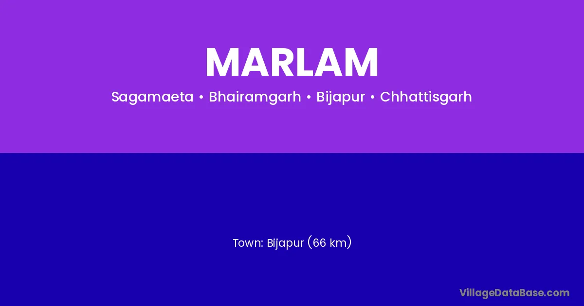 Bijapur (66 km) is the nearest town to Marlam village for major economic activities and is located approximately 66 km away.