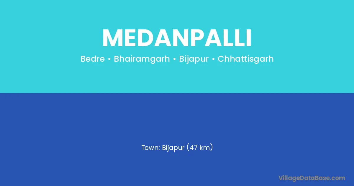 Bijapur (47 km) is the nearest town to Medanpalli village for major economic activities and is located approximately 47 km away.