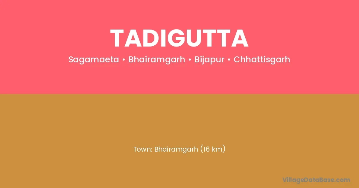 Bhairamgarh (16 km) is the nearest town to Tadigutta village for major economic activities and is located approximately 16 km away.