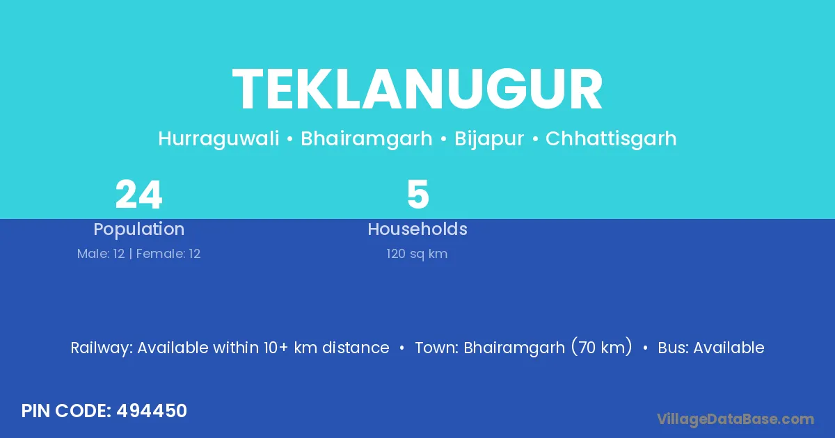 According to Census 2011 information, the village code of Teklanugur village is 494450.