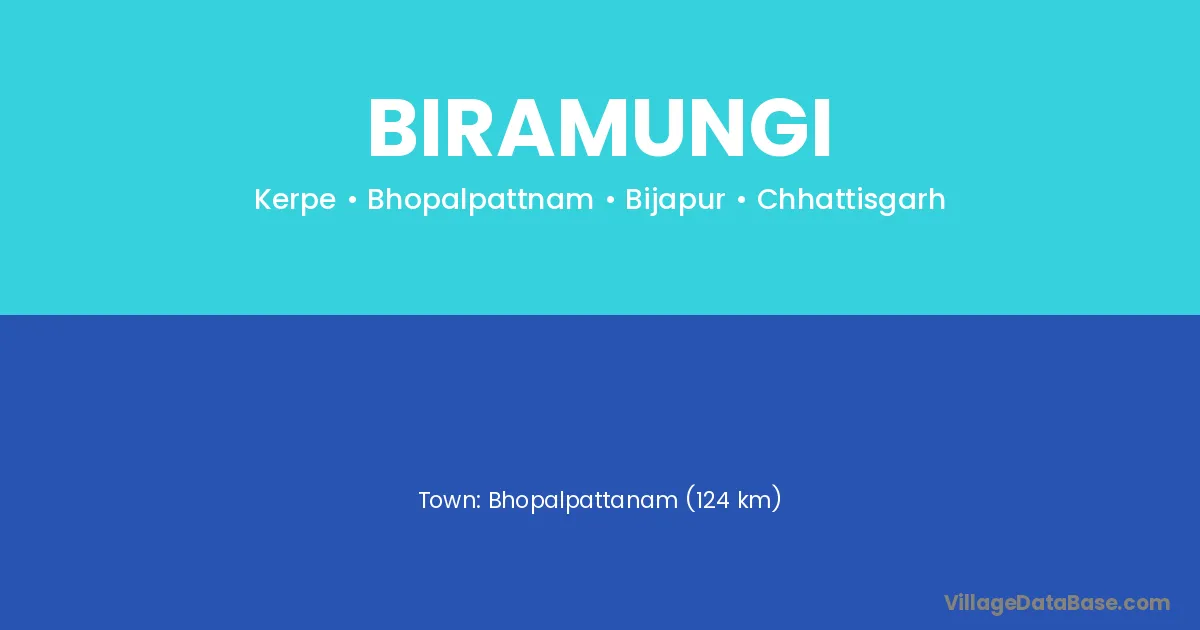 Bhopalpattanam (124 km) is the nearest town to Biramungi village for major economic activities and is located approximately 124 km away.