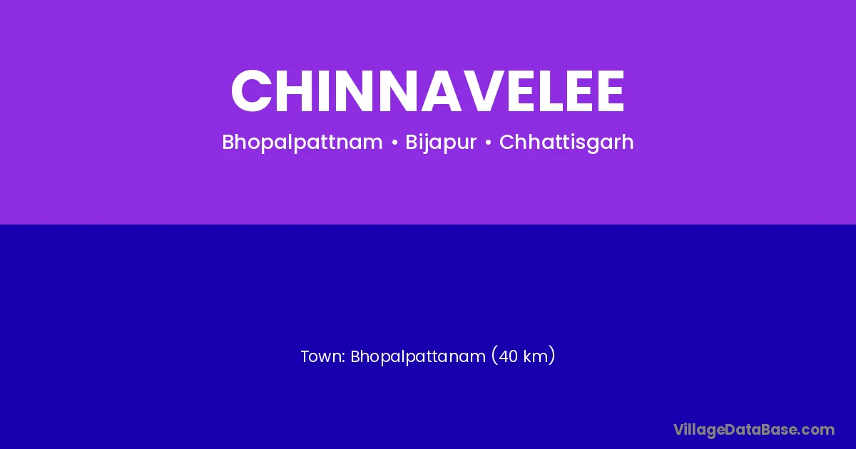 Chinnavelee village is located in the Bhopalpattnam Tehsil of the Bijapur district in Chhattisgarh .