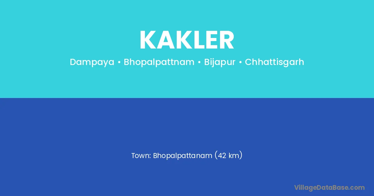Bhopalpattanam (42 km) is the nearest town to Kakler village for major economic activities and is located approximately 42 km away.