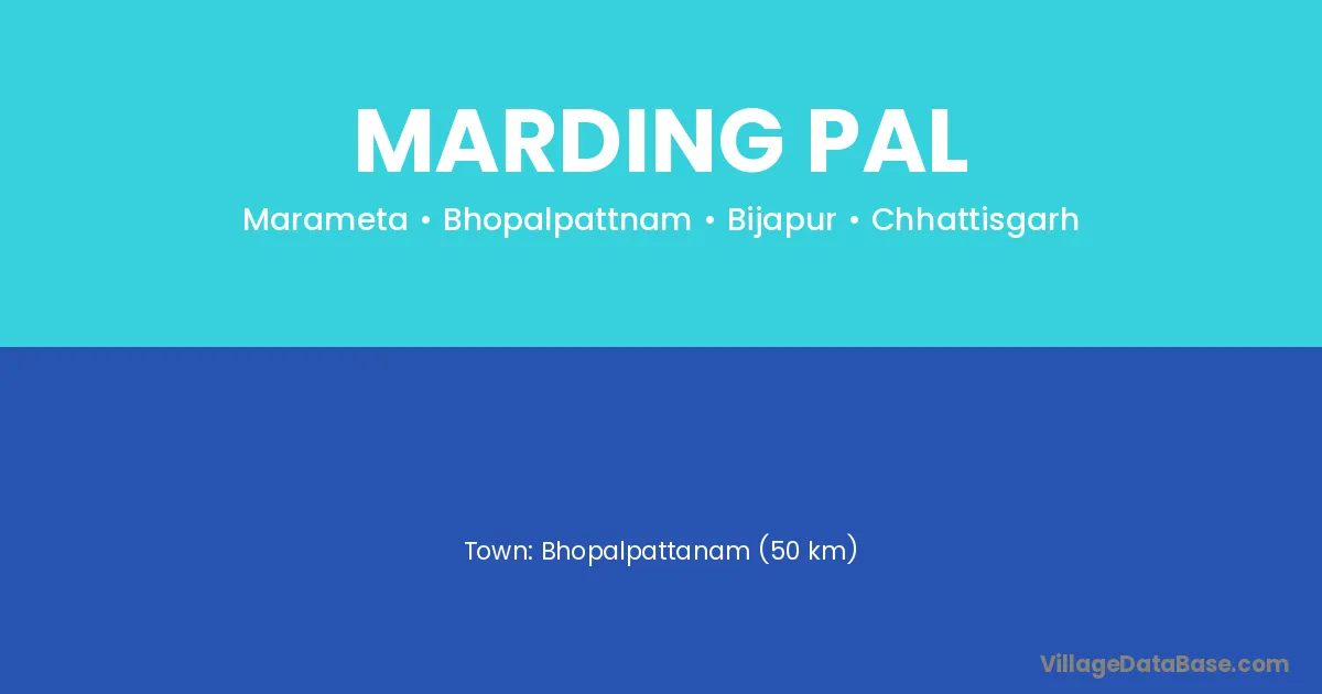 Bhopalpattanam (50 km) is the nearest town to Marding Pal village for major economic activities and is located approximately 50 km away.
