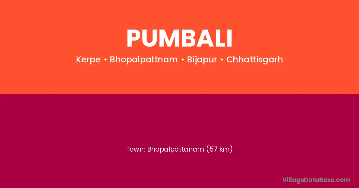 Bhopalpattanam (57 km) is the nearest town to Pumbali village for major economic activities and is located approximately 57 km away.
