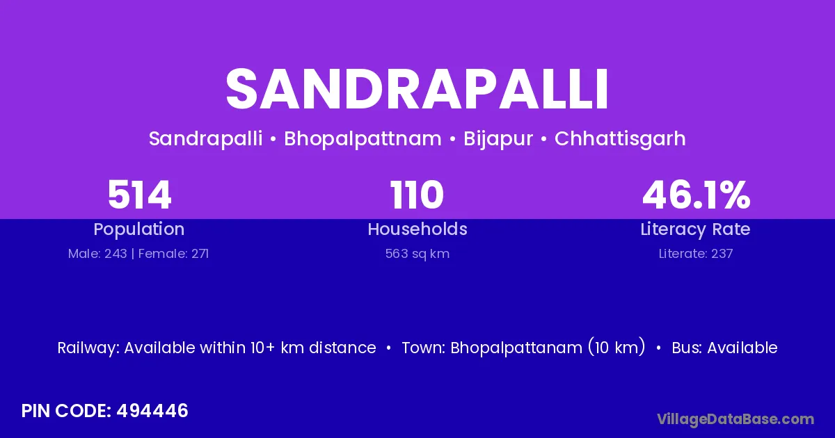 According to Census 2011 information, the village code of Sandrapalli village is 494446.