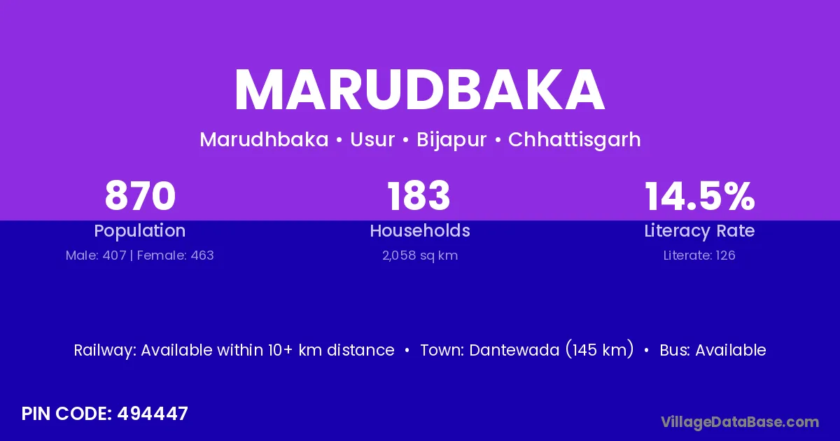 Marudbaka village has a total population of 870 people, of which 407 are males and 463 are females.