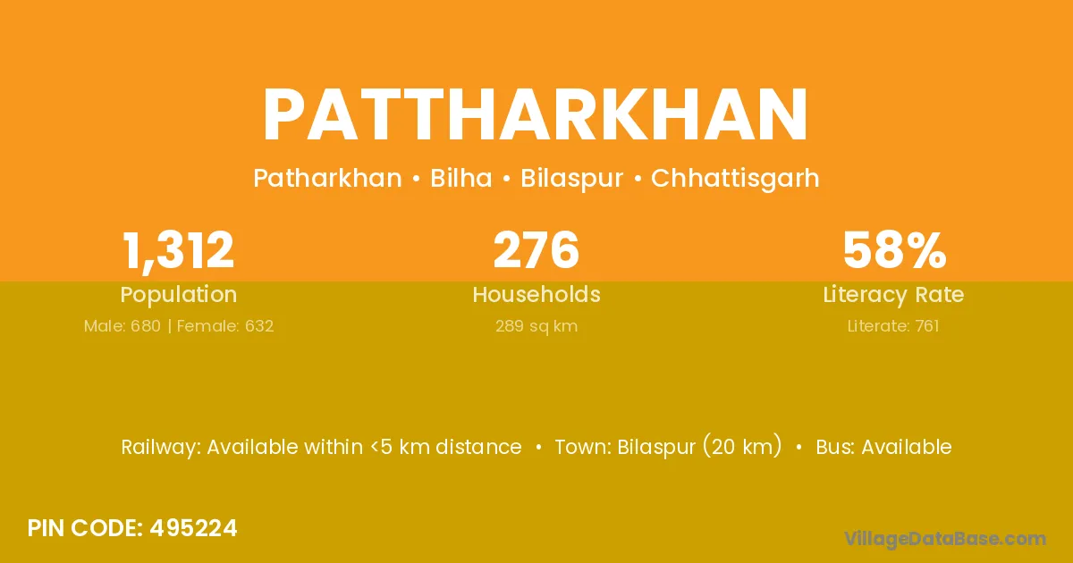Bilaspur (20 km) is the nearest town to Pattharkhan village for major economic activities and is located approximately 20 km away.