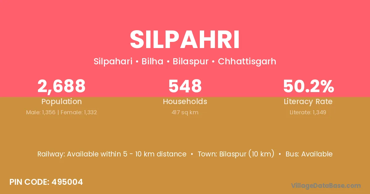 Bilaspur (10 km) is the nearest town to Silpahri village for major economic activities and is located approximately 10 km away.