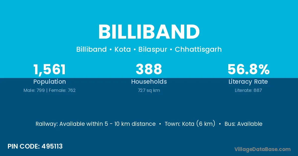 Kota (6 km) is the nearest town to Billiband village for major economic activities and is located approximately 6 km away.