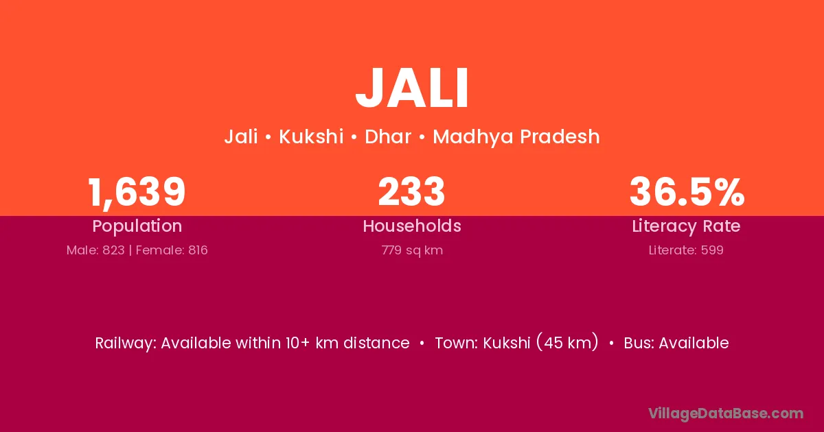 Ratanpur (35 km) is the nearest town to Jali village for major economic activities and is located approximately 35 km away.