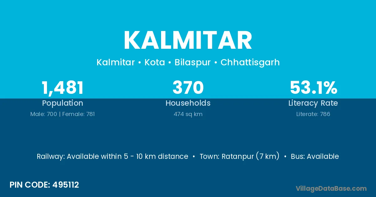 Ratanpur (7 km) is the nearest town to Kalmitar village for major economic activities and is located approximately 7 km away.