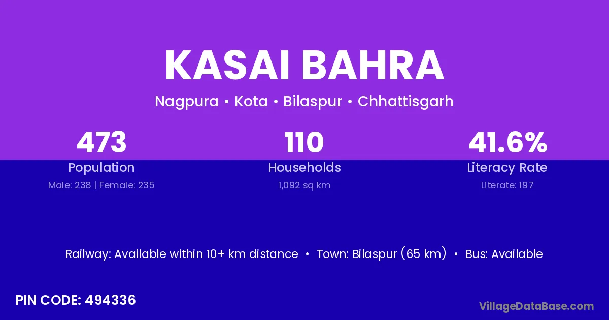 According to Census 2011 information, the village code of Kasai Bahra village is 494336.
