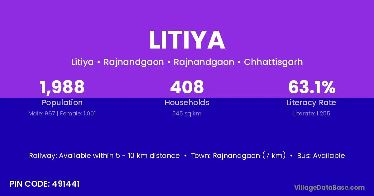 According to Census 2011 information, the village code of Litiya village is 495116.