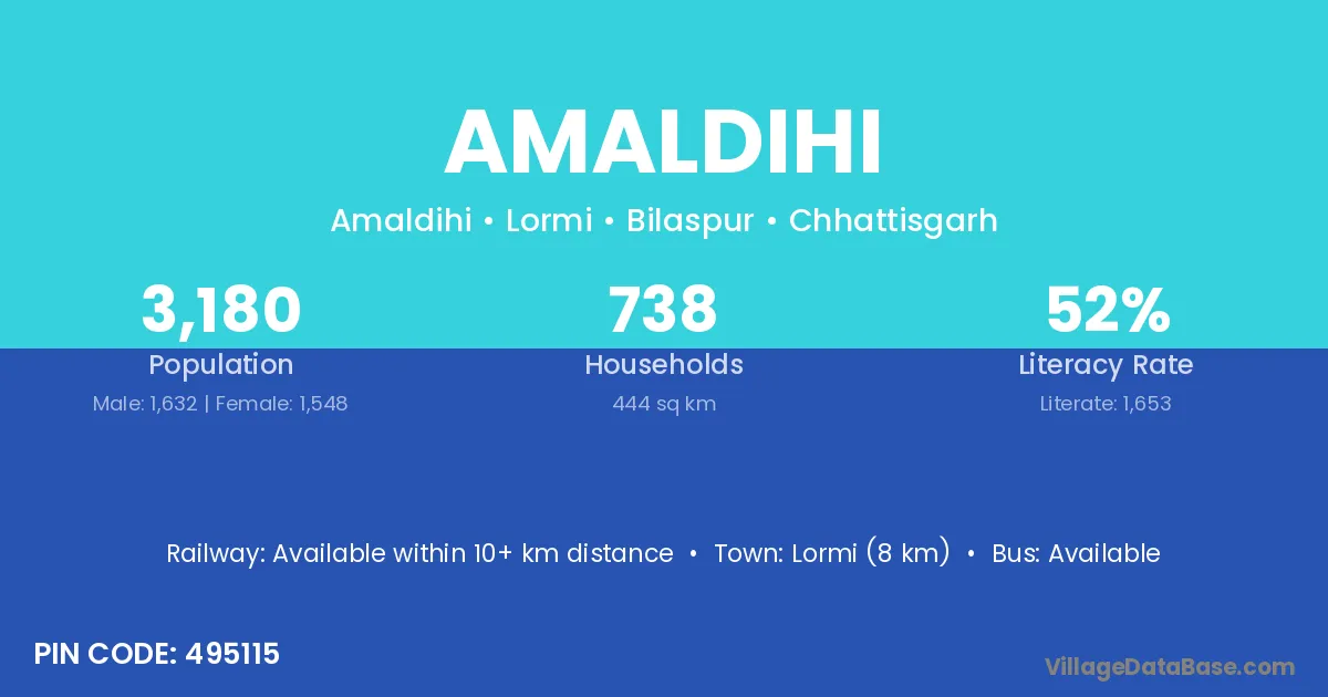 Lormi (8 km) is the nearest town to Amaldihi village for major economic activities and is located approximately 8 km away.