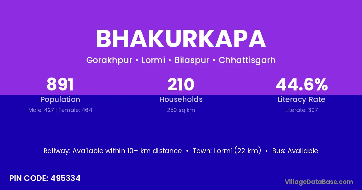 According to Census 2011 information, the village code of Bhakurkapa village is 495334.