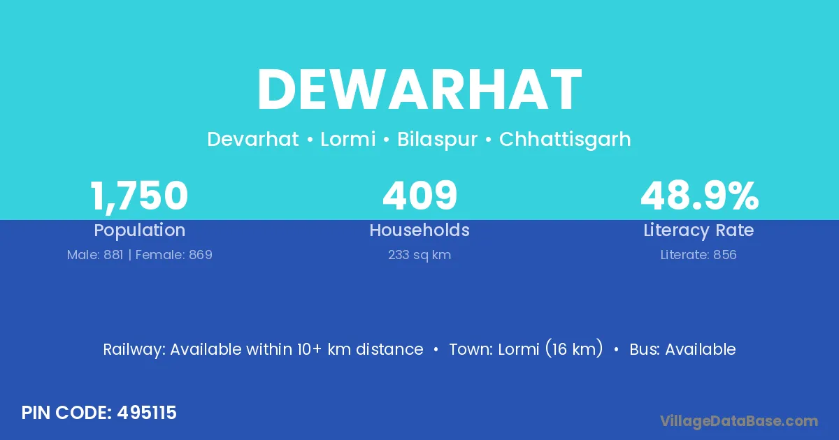 Lormi (16 km) is the nearest town to Dewarhat village for major economic activities and is located approximately 16 km away.