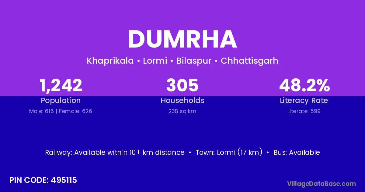 According to Census 2011 information, the village code of Dumrha village is 495115.