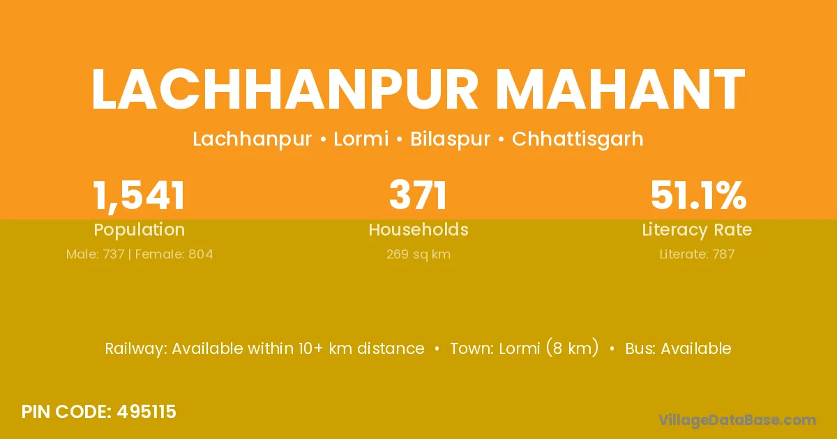Lormi (8 km) is the nearest town to Lachhanpur Mahant village for major economic activities and is located approximately 8 km away.