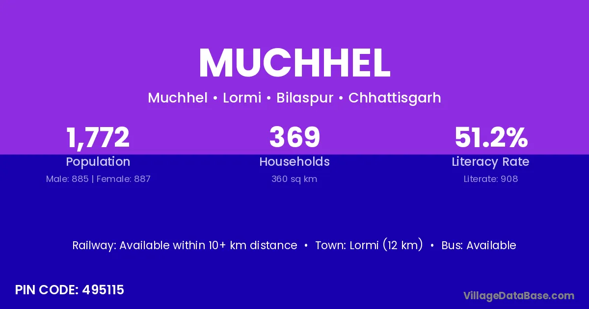 Lormi (12 km) is the nearest town to Muchhel village for major economic activities and is located approximately 12 km away.