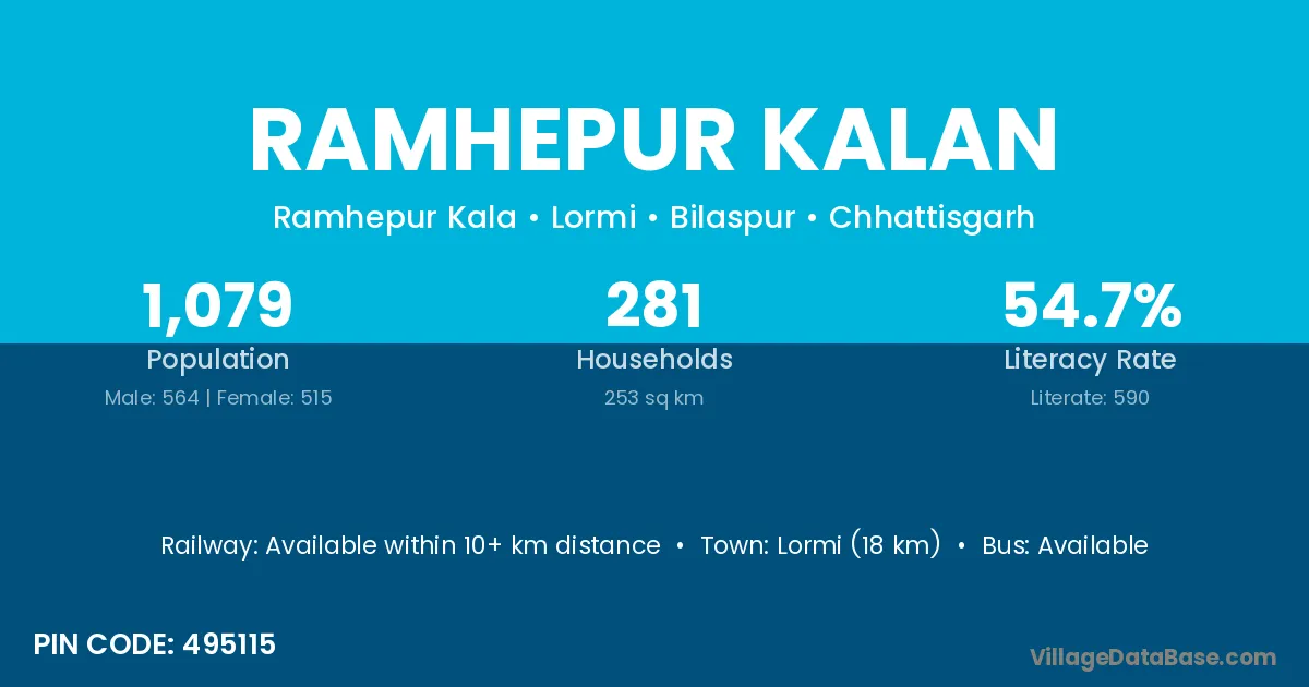 Lormi (18 km) is the nearest town to Ramhepur Kalan village for major economic activities and is located approximately 18 km away.