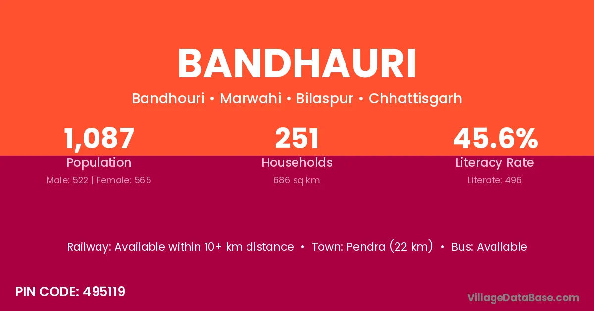Pendra (22 km) is the nearest town to Bandhauri village for major economic activities and is located approximately 22 km away.