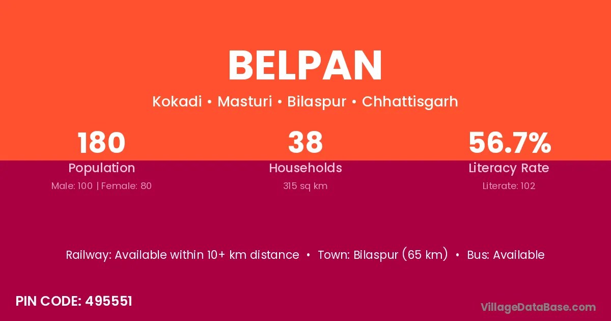 Bilaspur (65 km) is the nearest town to Belpan village for major economic activities and is located approximately 65 km away.