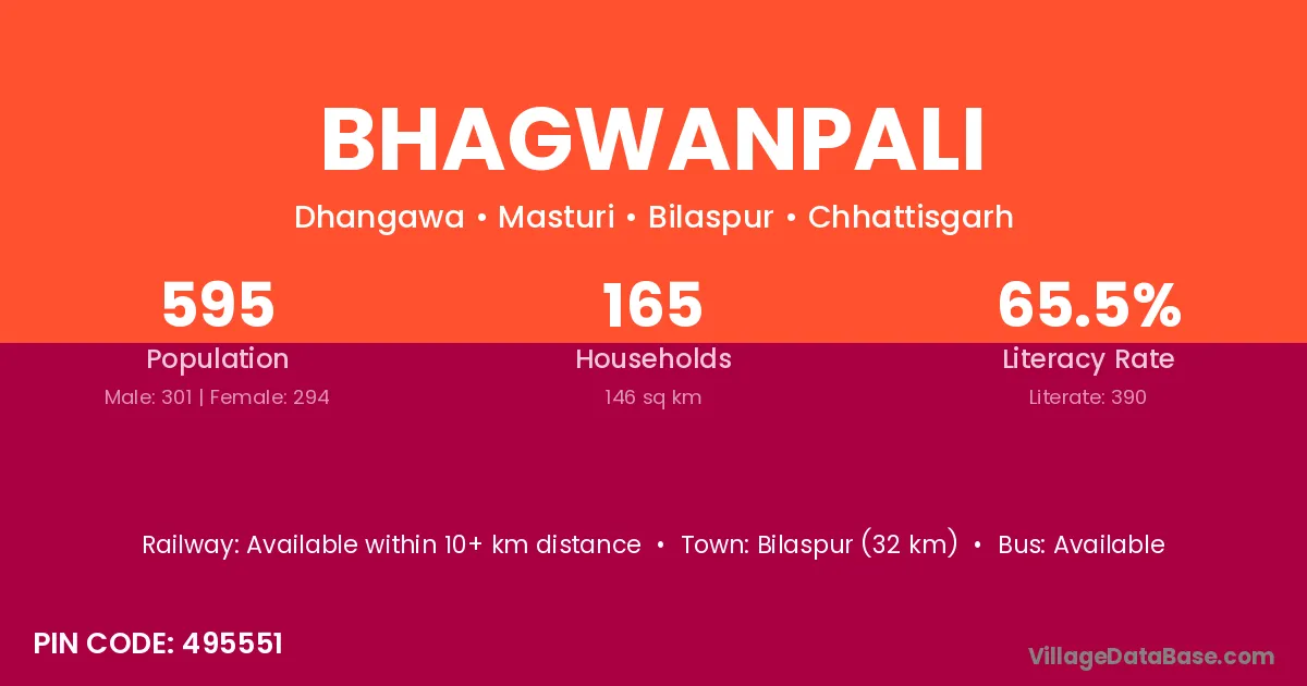 Bhagwanpali village has a total population of 595 people, of which 301 are males and 294 are females.
