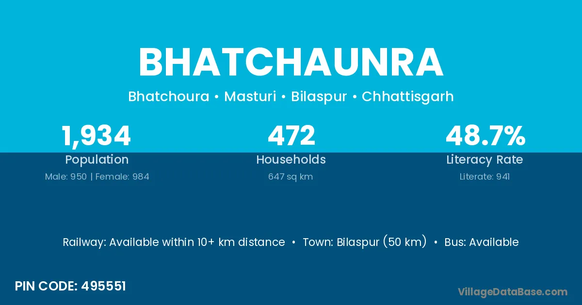 Bilaspur (50 km) is the nearest town to Bhatchaunra village for major economic activities and is located approximately 50 km away.