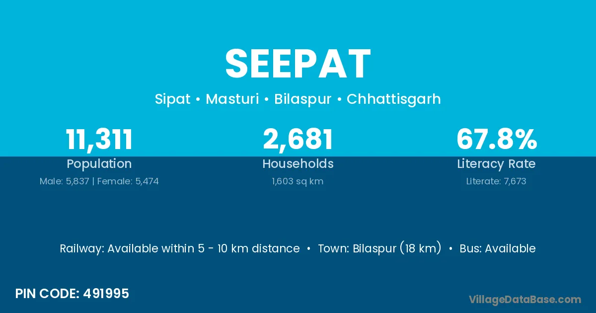 Bilaspur (18 km) is the nearest town to Seepat village for major economic activities and is located approximately 18 km away.