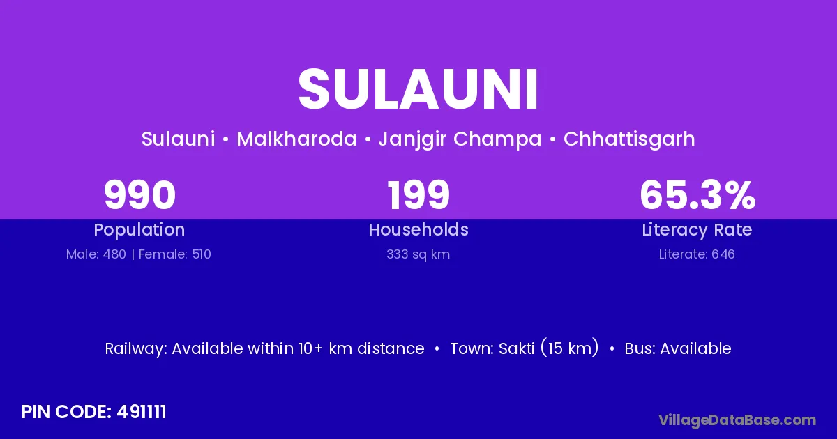 According to Census 2011 information, the village code of Sulauni village is 493221.