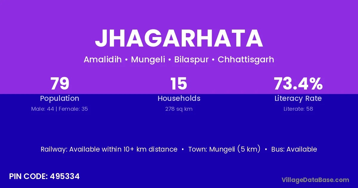 Mungeli (5 km) is the nearest town to Jhagarhata village for major economic activities and is located approximately 5 km away.