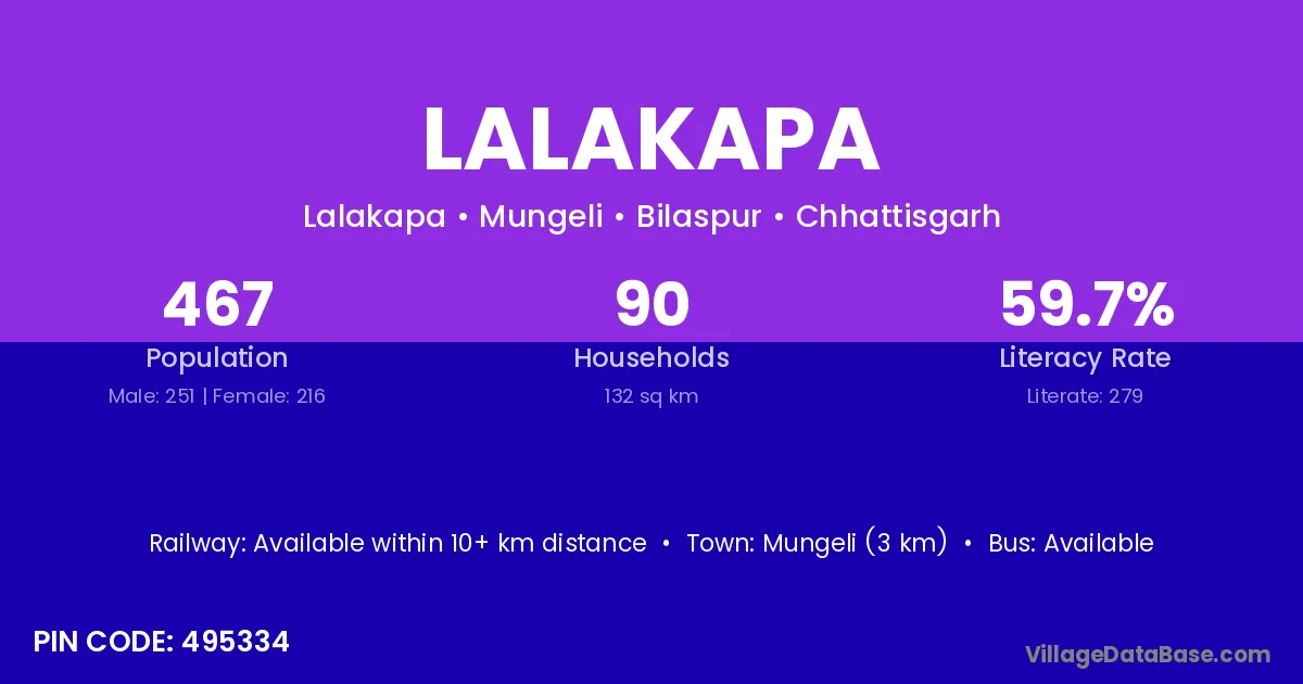 Lalakapa village is located in the Mungeli Tehsil of the Bilaspur district in Chhattisgarh .