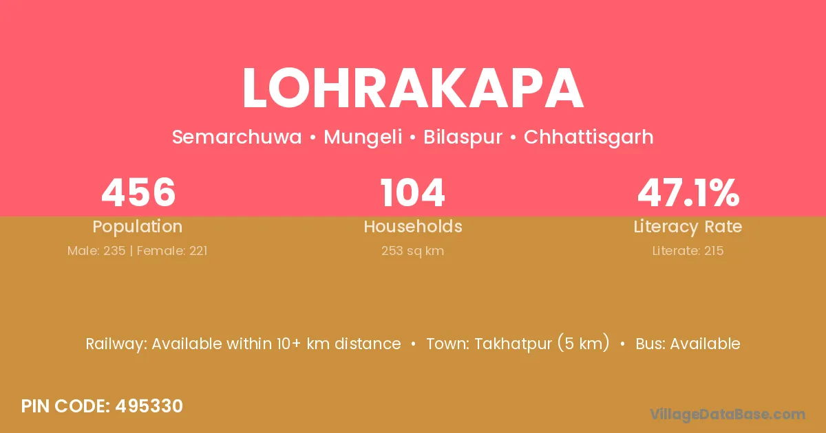 Lohrakapa village has a total population of 456 people, of which 235 are males and 221 are females.