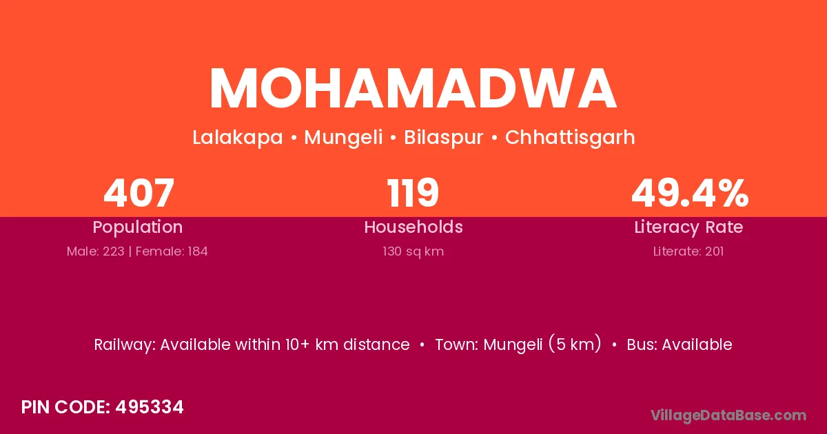 Mohamadwa village has a total population of 407 people, of which 223 are males and 184 are females.