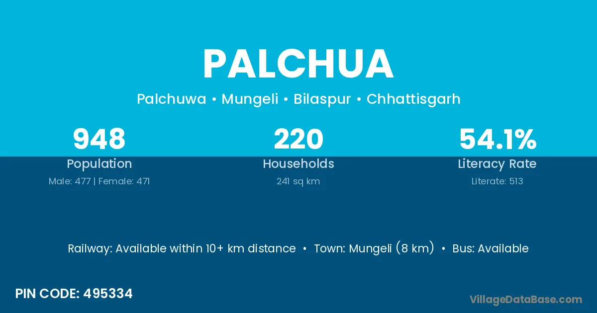 Palchua village has a total population of 948 people, of which 477 are males and 471 are females.