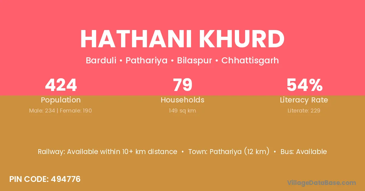 Pathariya (12 km) is the nearest town to Hathani Khurd village for major economic activities and is located approximately 12 km away.