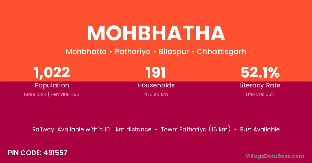 Mohbhatha village is located in the Pathariya Tehsil of the Bilaspur district in Chhattisgarh .