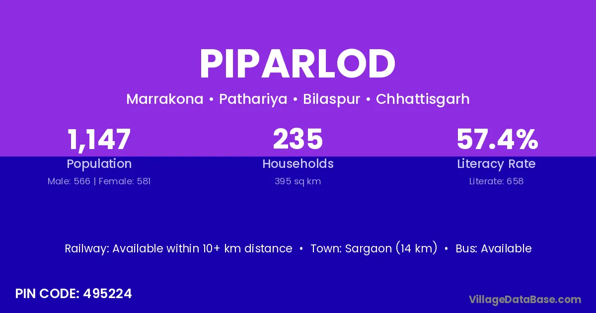 According to Census 2011 information, the village code of Piparlod village is 495224.
