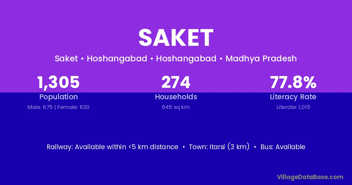 According to Census 2011 information, the village code of Saket village is 495224.
