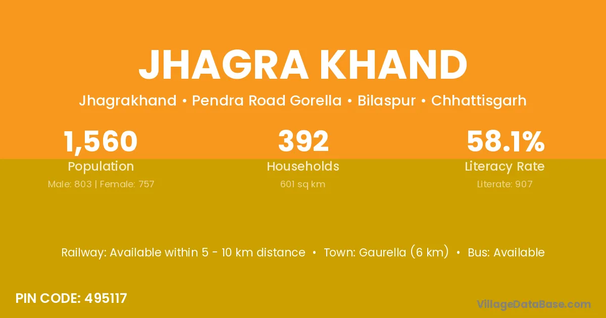 Gaurella (6 km) is the nearest town to Jhagra Khand village for major economic activities and is located approximately 6 km away.
