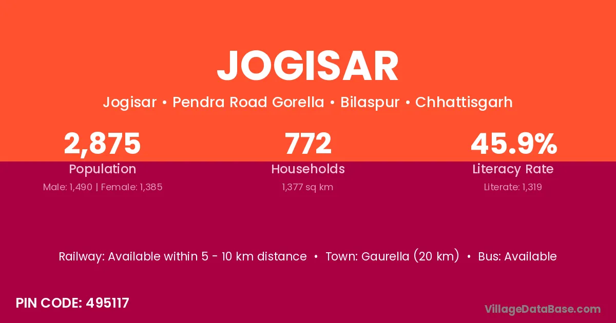 Gaurella (20 km) is the nearest town to Jogisar village for major economic activities and is located approximately 20 km away.