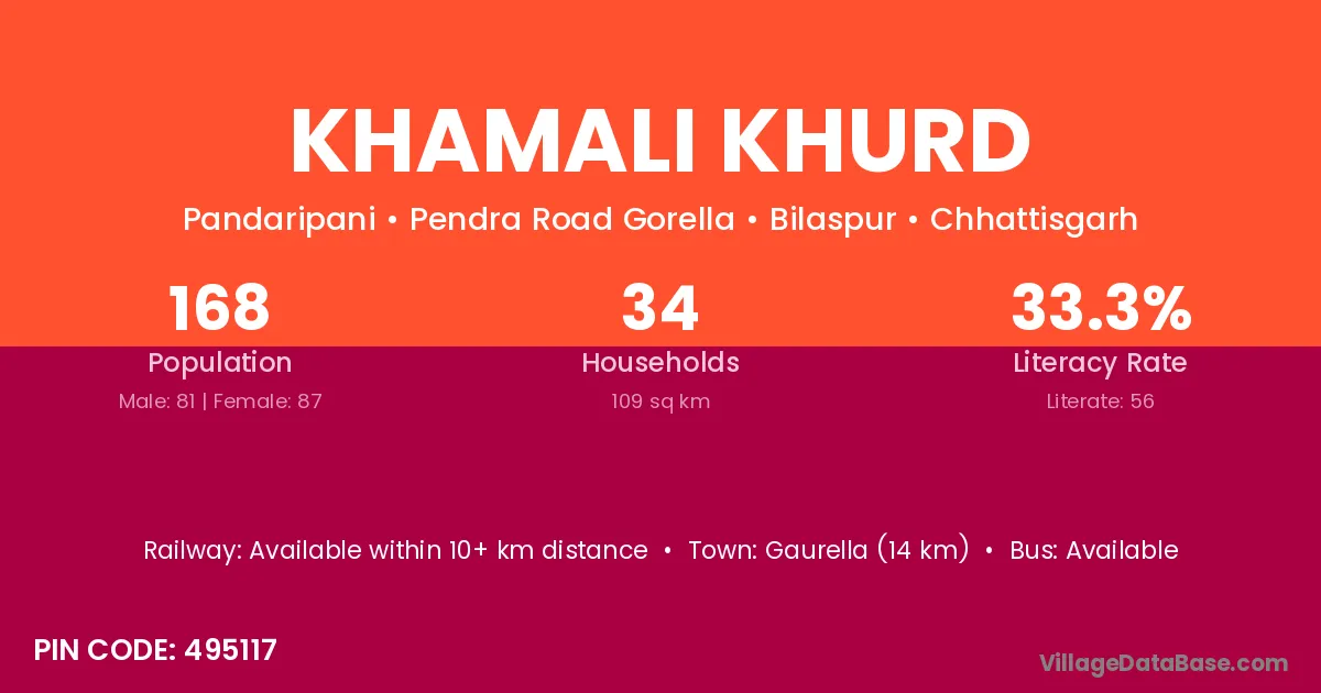 Gaurella (14 km) is the nearest town to Khamali Khurd village for major economic activities and is located approximately 14 km away.
