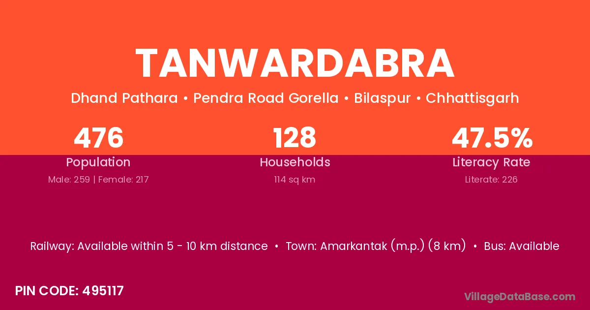 According to Census 2011 information, the village code of Tanwardabra village is 495117.