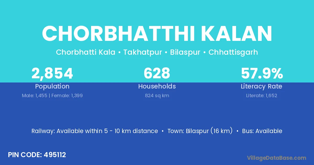 Bilaspur (16 km) is the nearest town to Chorbhatthi Kalan village for major economic activities and is located approximately 16 km away.