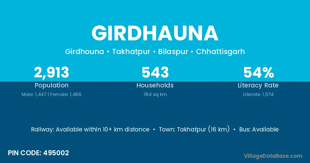 Takhatpur (16 km) is the nearest town to Girdhauna village for major economic activities and is located approximately 16 km away.
