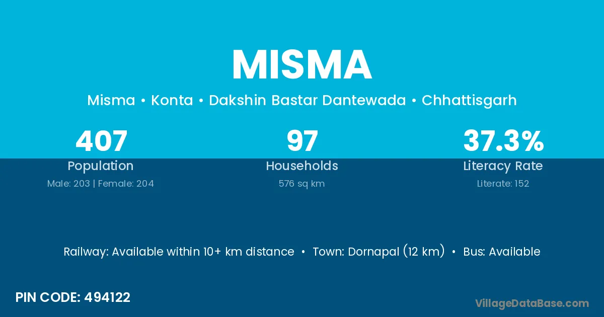 According to Census 2011 information, the village code of Misma village is 494122.