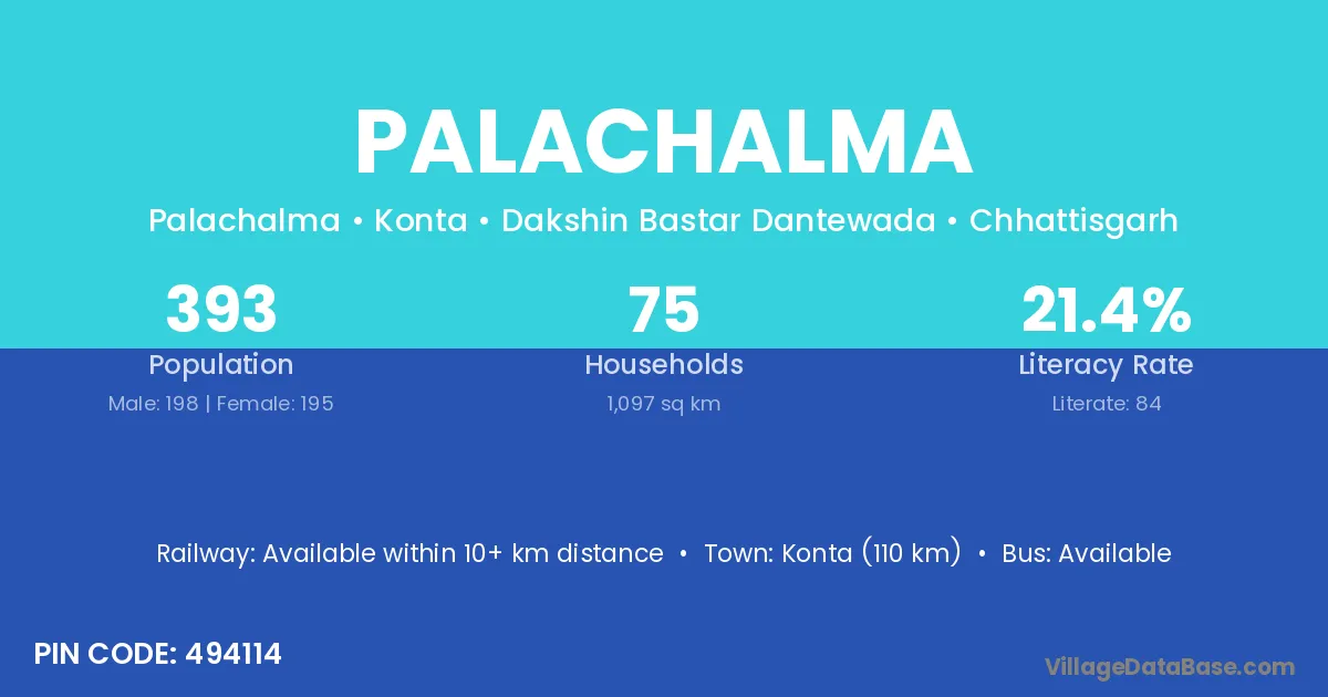 Palachalma village has a total population of 393 people, of which 198 are males and 195 are females.