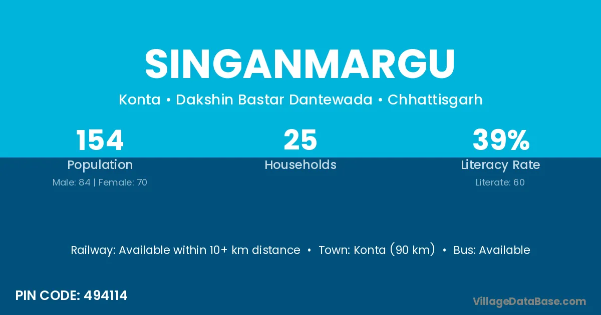 Singanmargu village has a total population of 154 people, of which 84 are males and 70 are females.