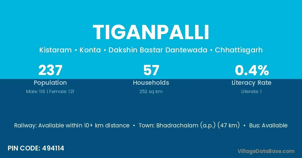 According to Census 2011 information, the village code of Tiganpalli village is 494114.